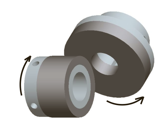 | 扭力極限功能 | 若產(chǎn)生非正常負(fù)荷,兩個(gè)磁齒輪就會(huì)各自轉(zhuǎn)動(dòng),實(shí)現(xiàn)轉(zhuǎn)矩極限功能。另外,因?yàn)槭欠墙佑|環(huán)境,無機(jī)械磨損,因些比以往的齒輪等傳送工具使用壽命更長(zhǎng)久。 |