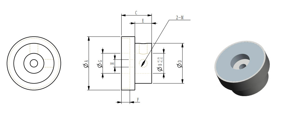 | 型號 | 外徑A | 可選內孔B | 高度C | D | E | F | G | H | M | 傳動扭力N.m | |